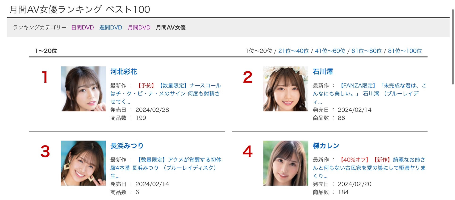 那为什么要中出し乱交大解禁?答案很简单,就因为楪カレン(楪可怜)很卖所以才要用比较激烈的企划让她好还要更好ー身为楪カレン(楪可怜)生涯的原生片商,OPPAI一直是很喜欢她的,这个月才替她发了出道三周年的纪念作「三线持って东京から冲縄に帰郷!Hcup巨乳の岛人AVデビュー3周年でうちなー凯旋やりぶさー!」,不只把场景从东京拉到她的出身地冲縄而且片中什么状况都有,又是男优没赶上飞机只好叫前男友来支援拍片(一次还来了两个),又是直接在路上逆搭讪找冲縄原产地的肉棒吃最后还让她又拿出「三线」弹奏⋯这种待遇不是大型女优是没有的,虽然不是出身自三大片商(S1、Moodyz和IP社)可以说出身不高,但现在没人可以小看她: