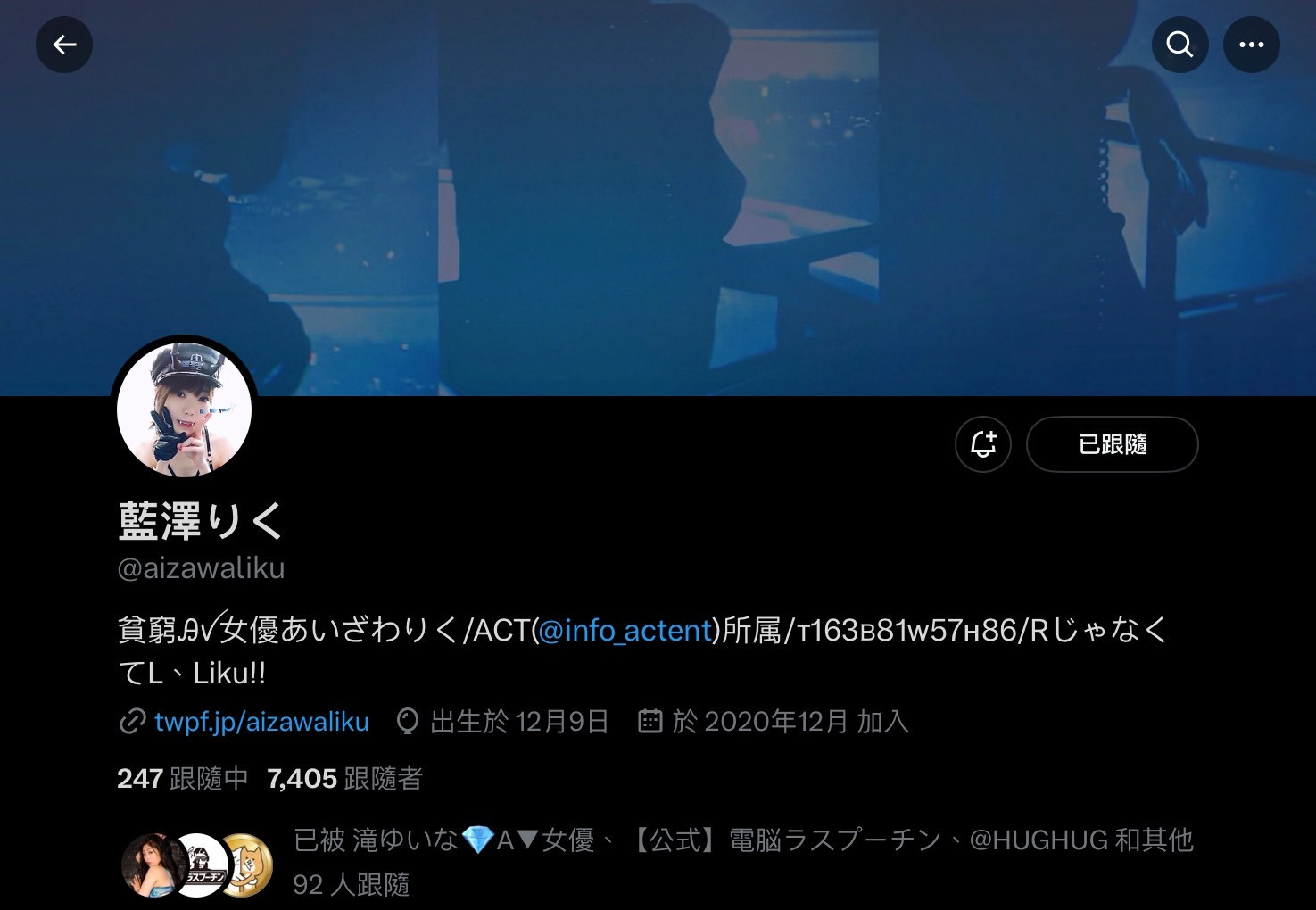 答案是经纪公司ACT所属的「蓝泽りく(蓝泽理红)」,是的,会写这篇除了是要介绍这支趁你病要你命的作品外也是想介绍蓝泽りく(蓝泽理红):大家可以去她的X(https://twitter.com/aizawaliku)瞧瞧,除了强调名字りく的拼音是Liku而不是Riku外她还注明了自己是贫穷AV女优,虽然不知道是不是赌到没钱,但确实蛮符合这支「赌博女黙示录」设定的因为实在太穷所以只好拍A片任你玩的设定⋯