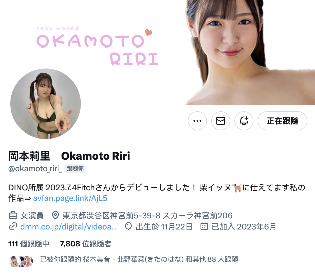 答案是「冈本莉里」,经纪公司DINO的女优(https://twitter.com/okamoto_riri_),去年7月她在片商Fitch出道,当时的卖点有三个,一个是还在念书的学生,一个是天然H罩杯的大奶,最后一个则是天然刚毛,也就是阴毛又黑又粗又硬,这样一位还是学生的大奶毛怪肯定很朋友喜欢,也难怪能在专门做欧派的片商发片ー